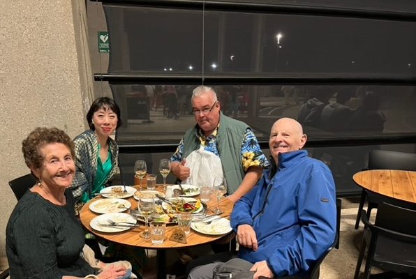 That evening we spent with our friends, Francine and Mika Johanssen. Francine, a marketing whiz, and our daughter-in-law, Amy, have been pals since primary school in the same hometown. Mika is Finnish and an executive in the global freight forwarding business. They moved to Australia from Shanghai about ten years ago and love it. Their daughter, 20, is now at university in Sydney. We hadn’t seen them since the 2008 Olympics in China when she was four. After drinks at their home, we had dinner outdoors at a Greek restaurant in a beachside development that reminded us of Laguna Beach Village. The area was rocking.