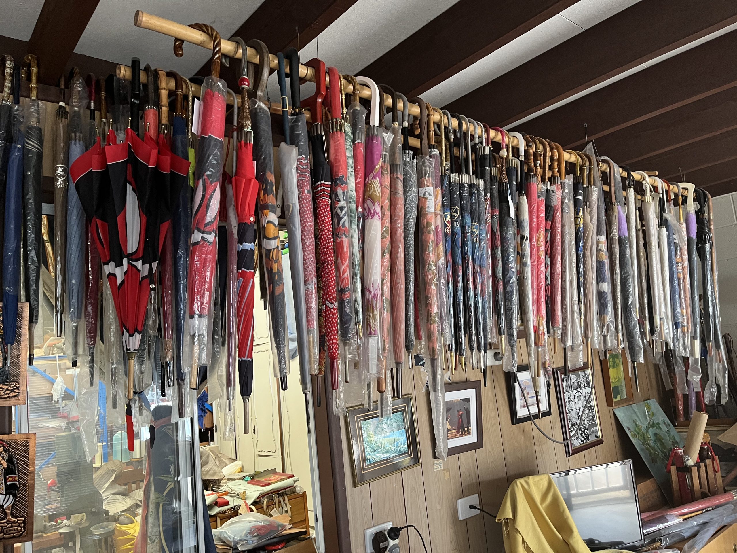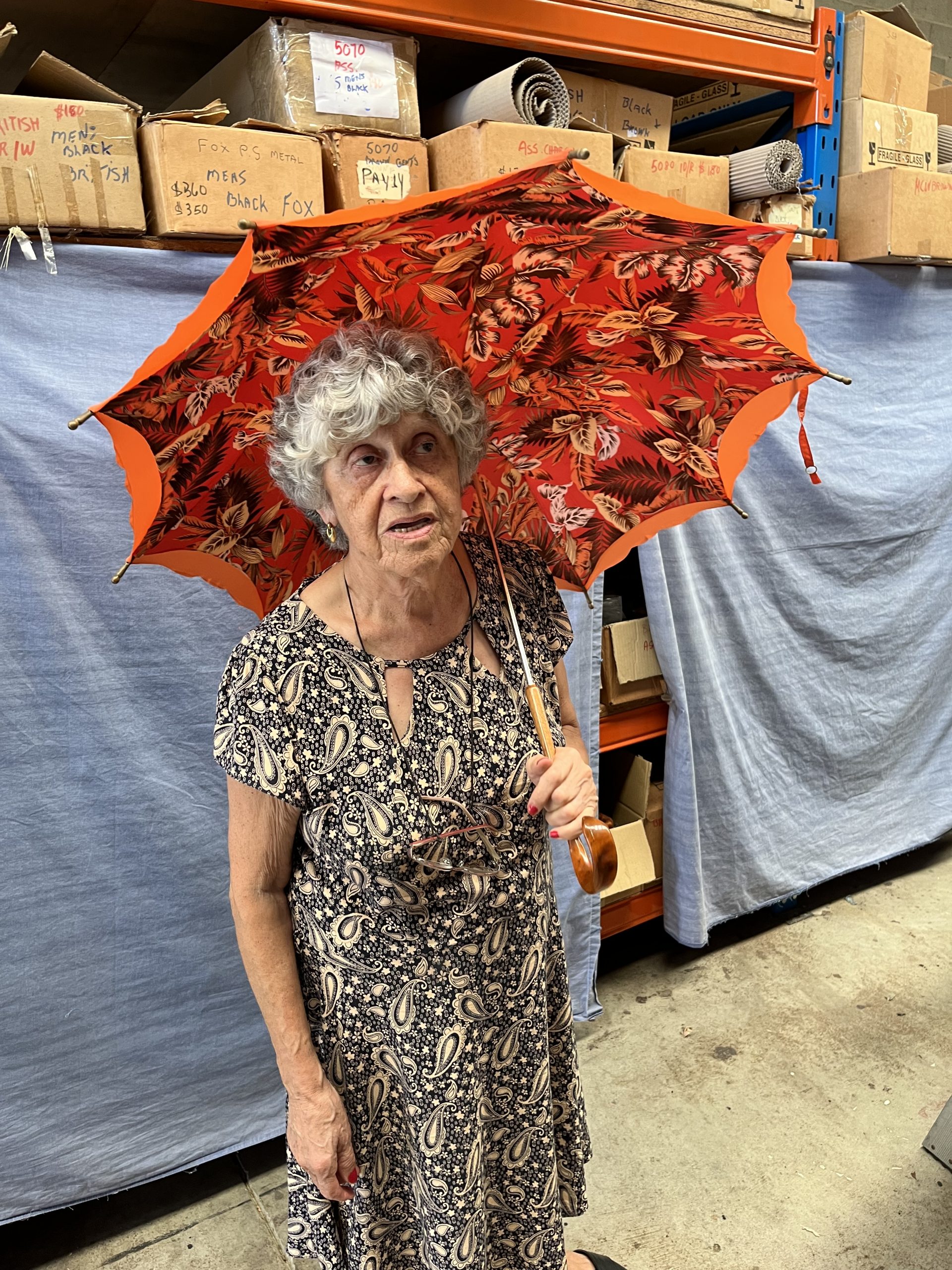 Yes, the Igra umbrella legacy survives in Brisbane, Australia, but thriving it isn’t. That said, it’s remarkable to visit the industrial park space crammed full of fabrics, handles, frames, and equipment handed down to Alicia Mor-Hyde from Michael (Marian in Poland) Igra, when he quit the business in the late 1980s. Alicia, an octogenarian native of Chile, came to Sydney as a young woman and found work as nanny to Michael’s sons, Anthony and David. As their nanny needs dwindled, she continued to manage Michael’s house and also worked in the umbrella factory. It’s unclear to me whether or not she bought, or was given, the remains of the stock, but she moved to Brisbane, married late in life, and “re-opened” the umbrella business. After finding her website, I’d written an email introducing myself as an Igra relative, and a few days later I heard from Anthony, whom she had contacted.